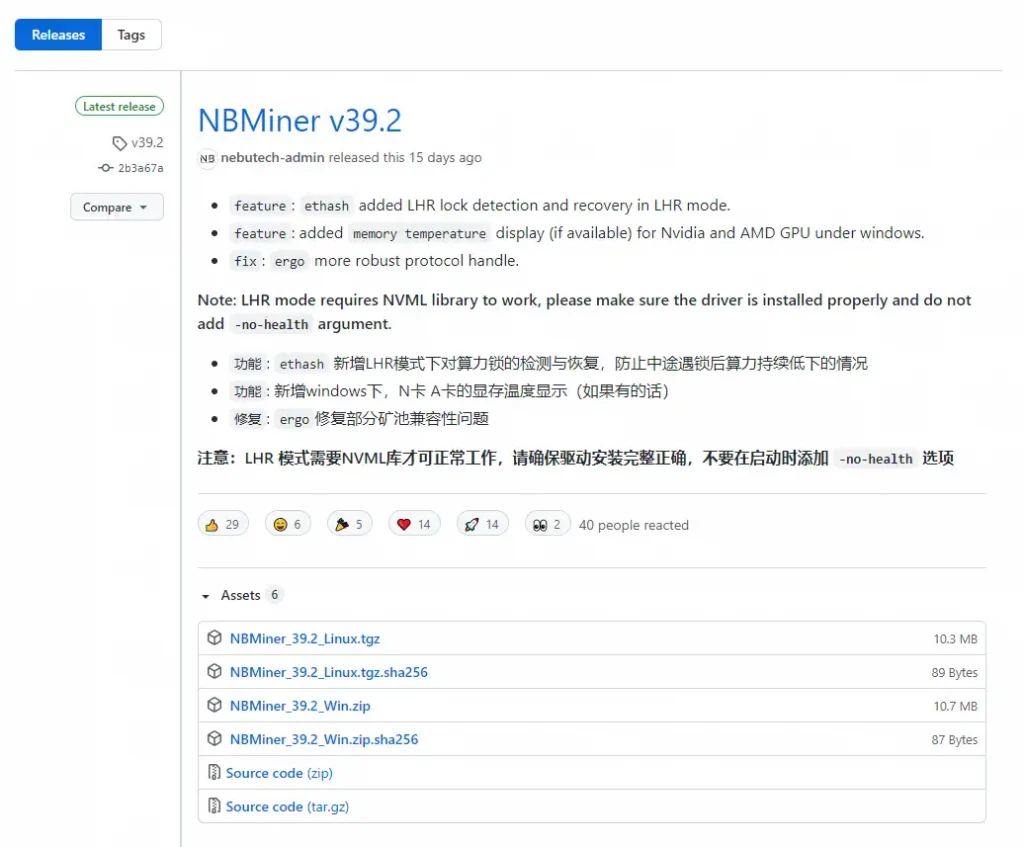 ניתן למצוא את ההורדה הרשמית של NBMiner במדור שחרור הדף GitHub שלהם. הגרסה עשויה להשתנות מאחר שעדכונים חדשים עשויים להתווסף עד שתקראו את המדריך הזה, אך הוראות השימוש יישארו זהות.